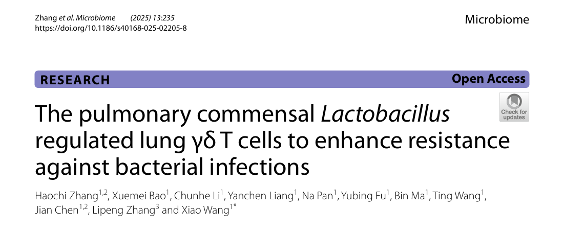 抗生素的广泛使用在治疗感染的同时,也带来了意想不到的后果——许多研究表明,长期使用抗生素可能破坏人体微生物群的平衡,增加继发感染的风险。在呼吸道领域,肺炎等细菌感染疾病的发病率与耐药性问题日益严峻,但肺部共生微生物参与免疫防御的深层机制尚不明确。这一领域的研究对开发新型抗感染策略具有重要意义。近期,内蒙古大学王潇教授团队发表在《Microbiome》的研究首次揭示了肺部共生乳酸菌通过调控γδT细胞增强抗感染免疫的具体机制,为理解微生物-宿主互作提供了新视角。